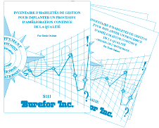 |   | Avant de s'engager dans une démarche, il est essentiel de pouvoir estimer avec exactitude sa position actuelle.  L'amélioration continue de la qualité exige du gestionnaire certaines attitudes et certains comportements qui permettront l'émergence d'un milieu favorable à la recherche de la qualité. Cet inventaire de 100 items vous permettra d'obtenir une mesure de vos perceptions concernant:   les croyances et les principes qui sous-tendent un effort qualité;  l'implication de vos collaborateurs;  l'utilisation des données dans vos décisions de gestion;  votre engagement envers la qualité;  votre style de leadership dans l'implantation d'un processus d'amélioration  continue. Des informations sur les principes et les croyances ainsi que sur l'interprétation des résultats, pour chacune des 5 dimensions analysées, complètent cet inventaire.  La version du questionnaire «Opinion de l'entourage» vous permettra d'obtenir du feedback d'un supérieur, d'un collègue et d'un employé sur les mêmes dimensions.