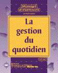 |   |         Habitudes de travail        Pertes de temps        Interruptions        Crises et urgences        Tendance à reporter à plus tard        Travail efficace Plusieurs éléments peuvent contribuer à une gestion plus ou moins efficace du quotidien.  Les habitudes de travail et les manières utilisées pour transiger avec les gens de l'entourage en sont les plus importants. Dans ce manuel d'exercices de 28 pages, les textes d'accompagnement serviront de guides et de suggestions au lecteur pour:         s'assurer des pratiques de travail qui soient satisfaisantes;        mieux gérer son temps;        avoir du contrôle sur ce qui arrive plutôt que d'être à la merci desévénements;        réduire l'incidence des urgences;        profiter du temps disponible;        se donner une philosophie de vie qui garantira l'efficacité. |